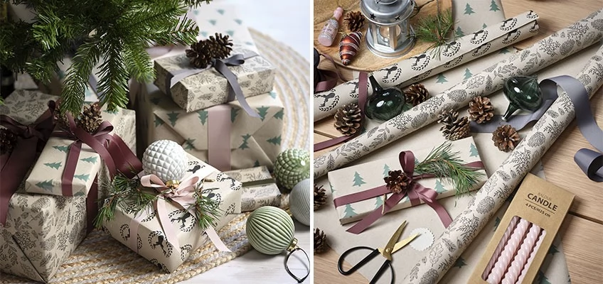 Gözəl bükülmüş hədiyyə ,həmişə sevinc gətirəcək və Şam ağacın altında gözəl görünəcəkdir. Hədiyyələr interyerin əla elementi ola bilər. Onları hədiyyə kağızına bağlatdırın və Şam ağacın altına qoyun. Siz həmçinin qablar və saxlama qutuları ilə bayram əhval-ruhiyyəsi yarada bilərsiniz: onları kağıza sarın və evin ətrafına düzün.